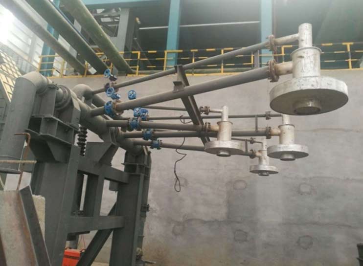 中间包烘烤器主要由:烘烤烧嘴、转臂、燃气管路系统、空气管等组成,主要作用是对炼钢厂中间钢水包进行烘烤,以减少中间包内钢水的温降和热损耗。